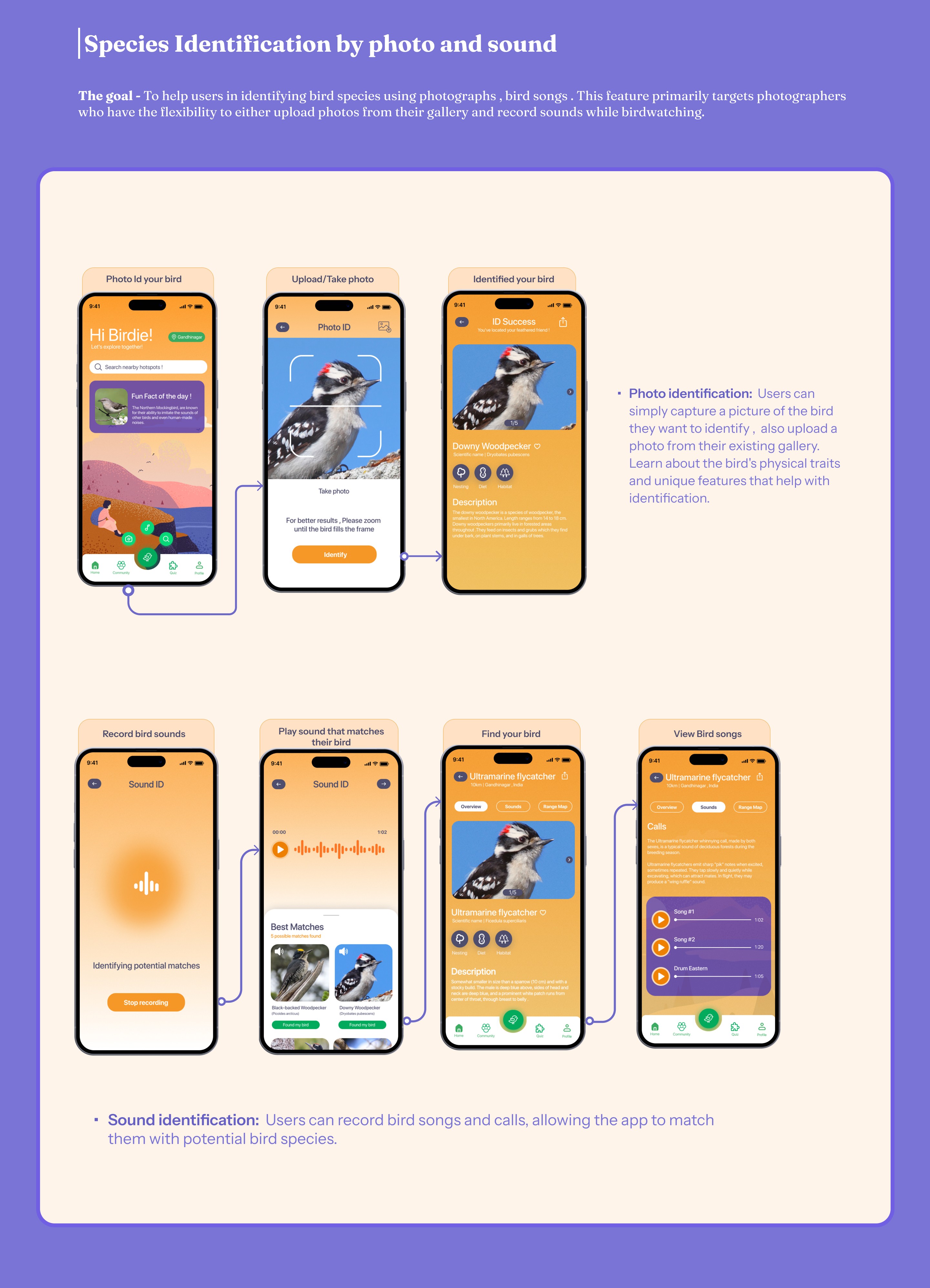 By creating an app with recognition features Users can upload bird images which the app can utilize to provide the corresponding bird species. Additionally, the app can also incorporate sound recognition and input text to specify additional details